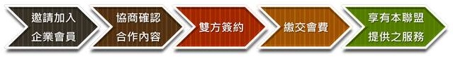 會員加入 獲知業者加入企業會員之意願後,將安排洽談協商確認雙方合作內容。待業者與本聯盟完成簽約並繳交會費,即可享有本聯盟提供之服務。